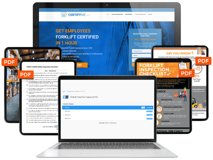 If you’re going the online route for forklift trainer certification, Certifyme.net is the way to go. We’ll provide your trainer with the OSHA complaint online forklift trainer certification, which allows your company to train employees in house!