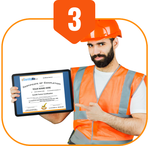 Sign up for your forklift trainer certification with CertifyMe.net! You’ll save money in the long run, and also make your workplace safer! We’re here to help with all your online train the trainer certification needs! For any questions about our OSHA train the trainer course, give us a call at